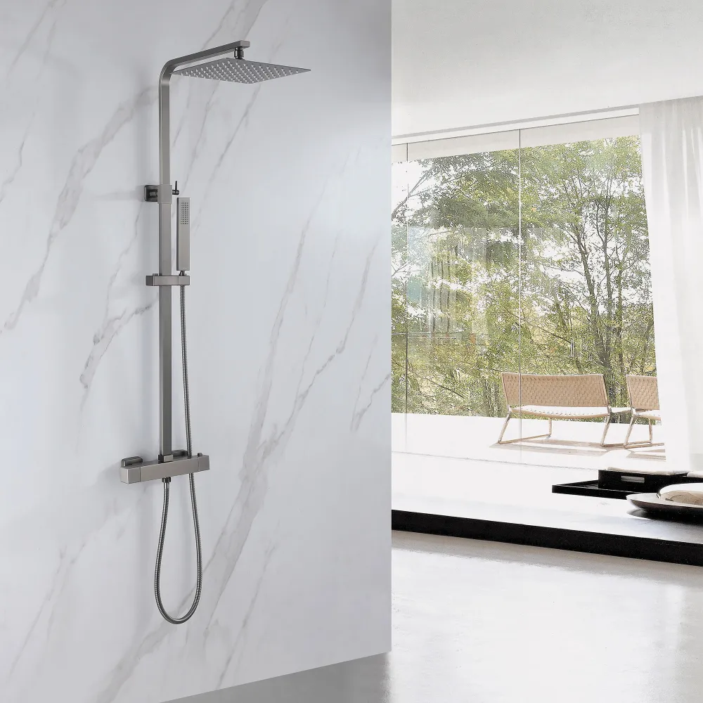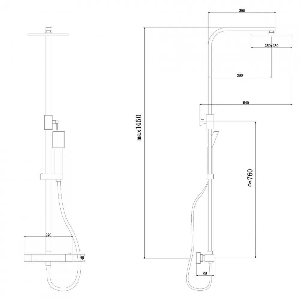 Комплектация: | верхний душ , стойка , смеситель , термостат , кронштейн , шланг , держатель , лейка |