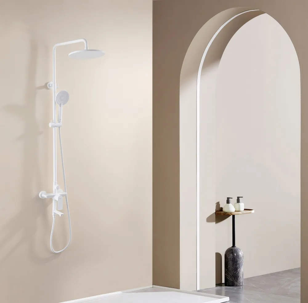 Душевая система Abber Weiss Insel с изливом, белая матовая