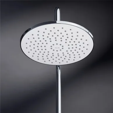 - Шаровый шарнир в держателе верхнего душа позволяет регулировать угол его наклона. Душевой шланг 1750 мм, увеличенный размер тропического душа диаметром 220 мм, телескопическая штанга с диапазоном регулировки 400 мм сделает процесс принятия душа удобным для людей любого роста. Элегантный 115 мм ручной душ за счет утонченной формы обеспечивает уверенный поток воды даже при низком давлении в системе, эргономичная ручка идеально ложится в руку. Функция Rub&Clean позволит легко очистить душевые форсунки от загрязнений.