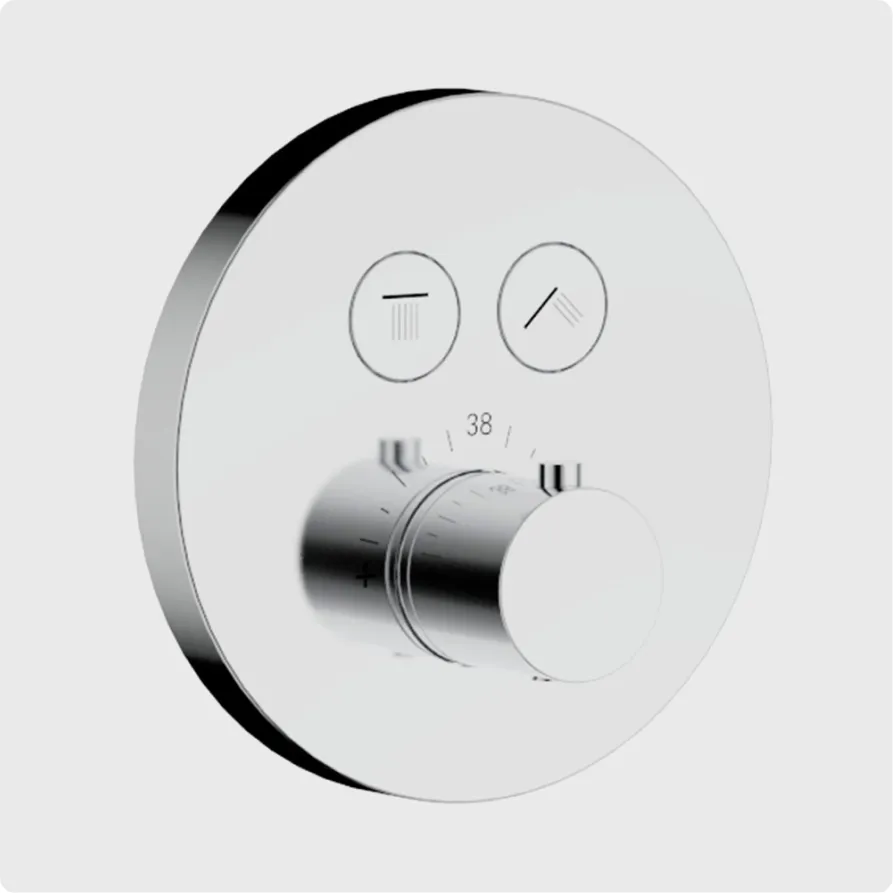 Термостатический смеситель рассчитан на 2 потребителя (верхний душ / душевая лейка. Скрытая часть входит в состав поставки.