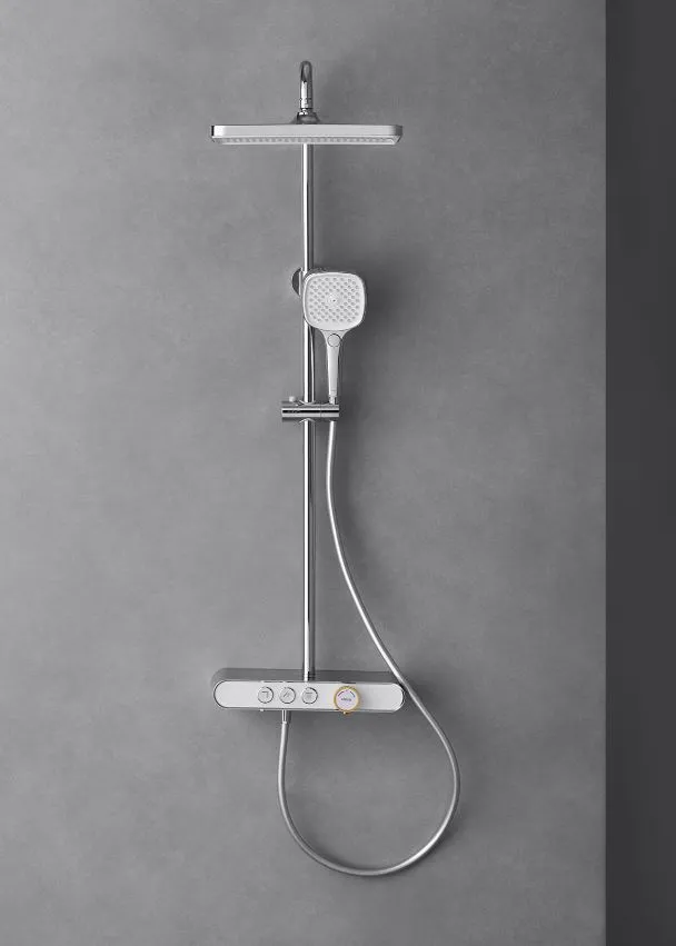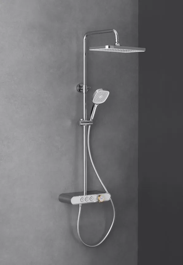 | Комплектация: | излив , верхний душ , полочка , стойка , лейка , держатель , шланг , смеситель , термостат , кронштейн |