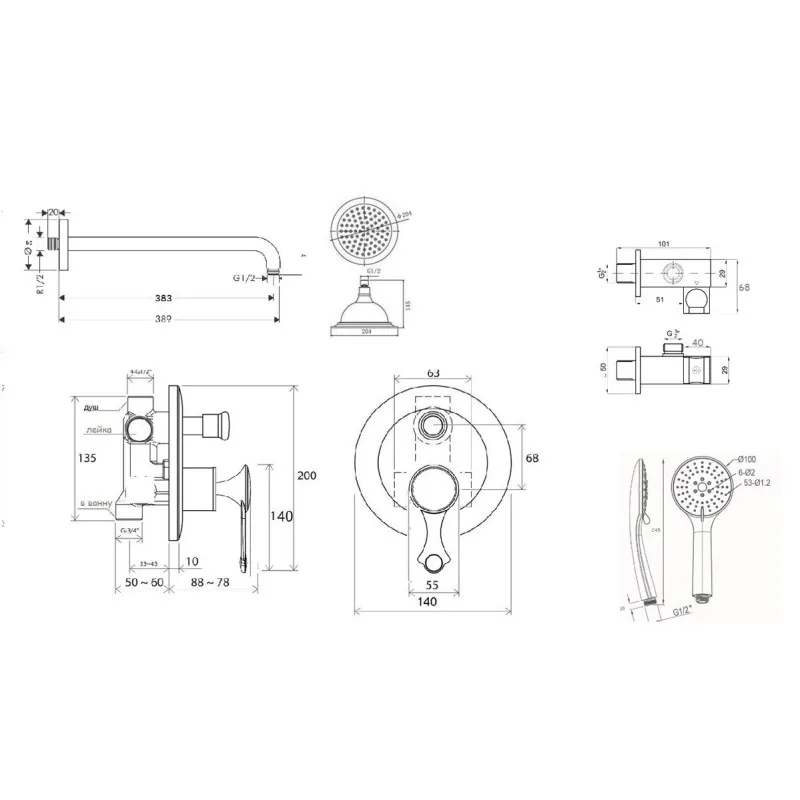 Душевая система Bronze de Luxe Yasmina NT800/B02-2 скрытого монтажа