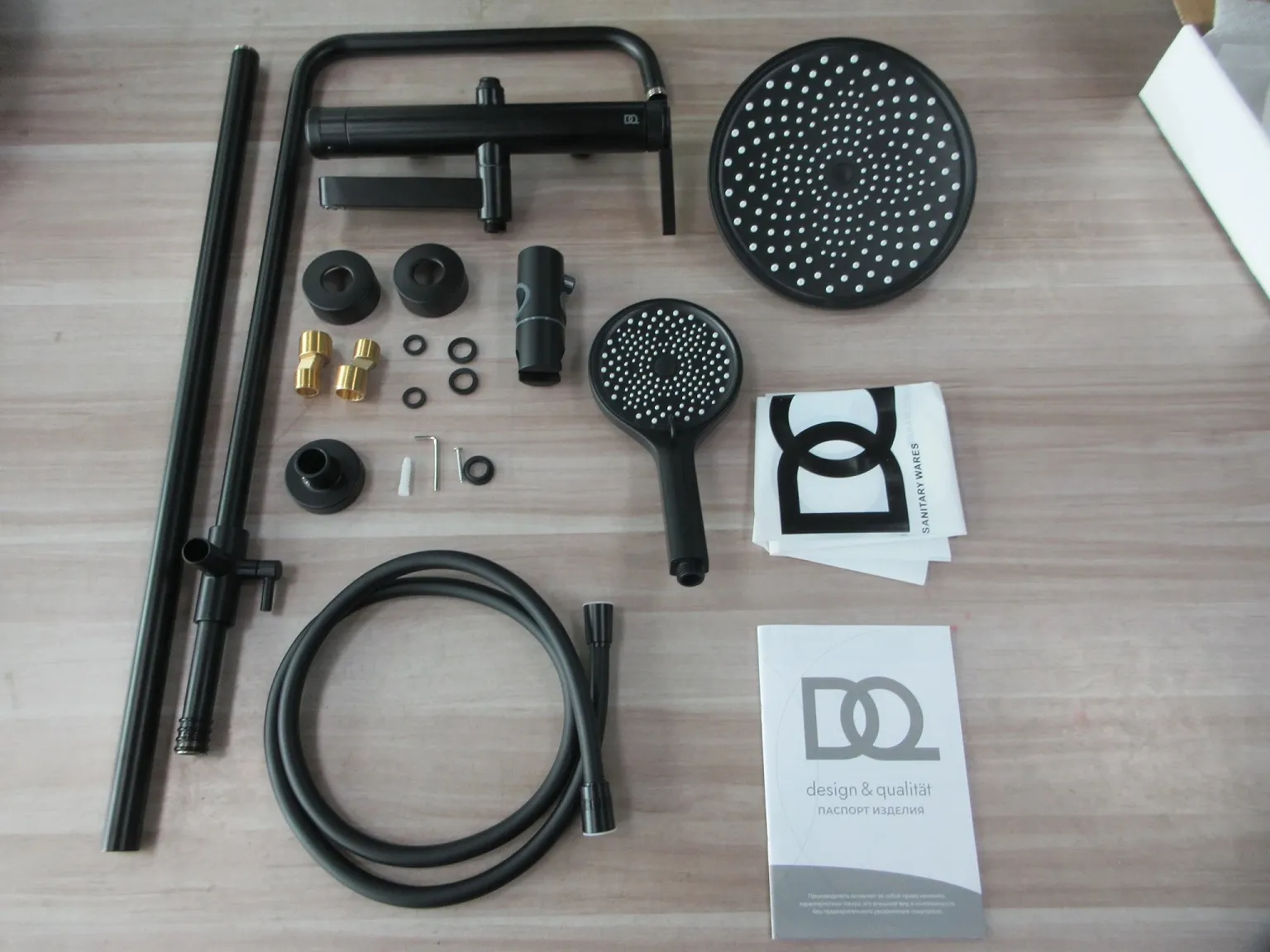 | Комплектация: | смеситель , шланг , держатель , лейка , стойка , верхний душ , излив |