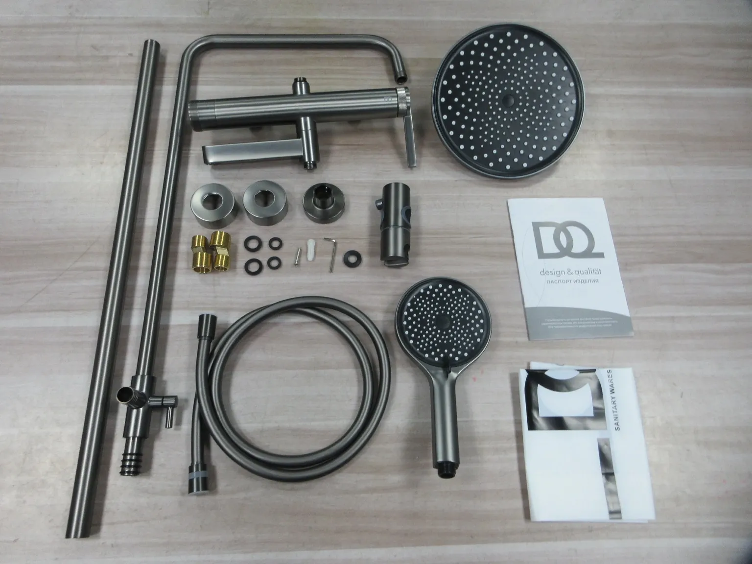 | Комплектация: | смеситель , шланг , держатель , лейка , стойка , верхний душ , излив |