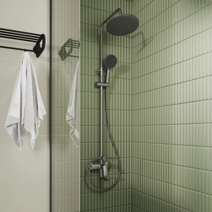 Смеситель для ванны Rora отличается универсальным характером: основной акцент в его дизайне приходится на плавные линии корпуса и трендовый графитовый цвет. Большой диаметр (ø 250 мм) верхней лейки способствует равномерному распределению струи. Увеличенный вынос верхнего душа (394 мм) дарит максимальную свободу движений. Поворотный излив эстетично встроен в корпус, вода из него поступает в ванну под комфортным углом. Четырехрежимная ручная лейка (ø 120 мм) с держателем, ПВХ-шланг (1,5 м), штанга для душа с возможностью регулировки по высоте и крепеж идут в комплекте. Качественный механизм смешивания воды смесителя Milardo® рассчитан на более чем 70 000 циклов работы – это не менее 15 лет эксплуатации семьей из трех человек. PVD-покрытие смесителя нанесено методом вакуумного напыления, при котором частички краски проникают глубоко в структуру металла. Подобная технология обеспечивает высокую стойкость цвета при негативном воздействии внешних факторов.