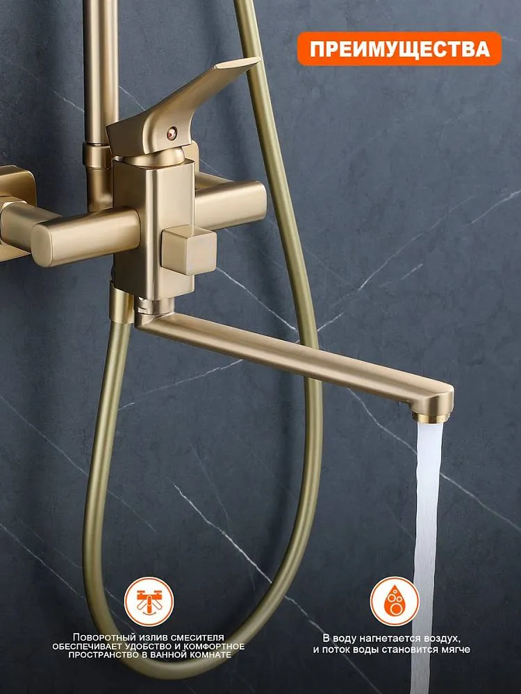 Душевая система Prohanss P62 P62.24.03 золотой сатин