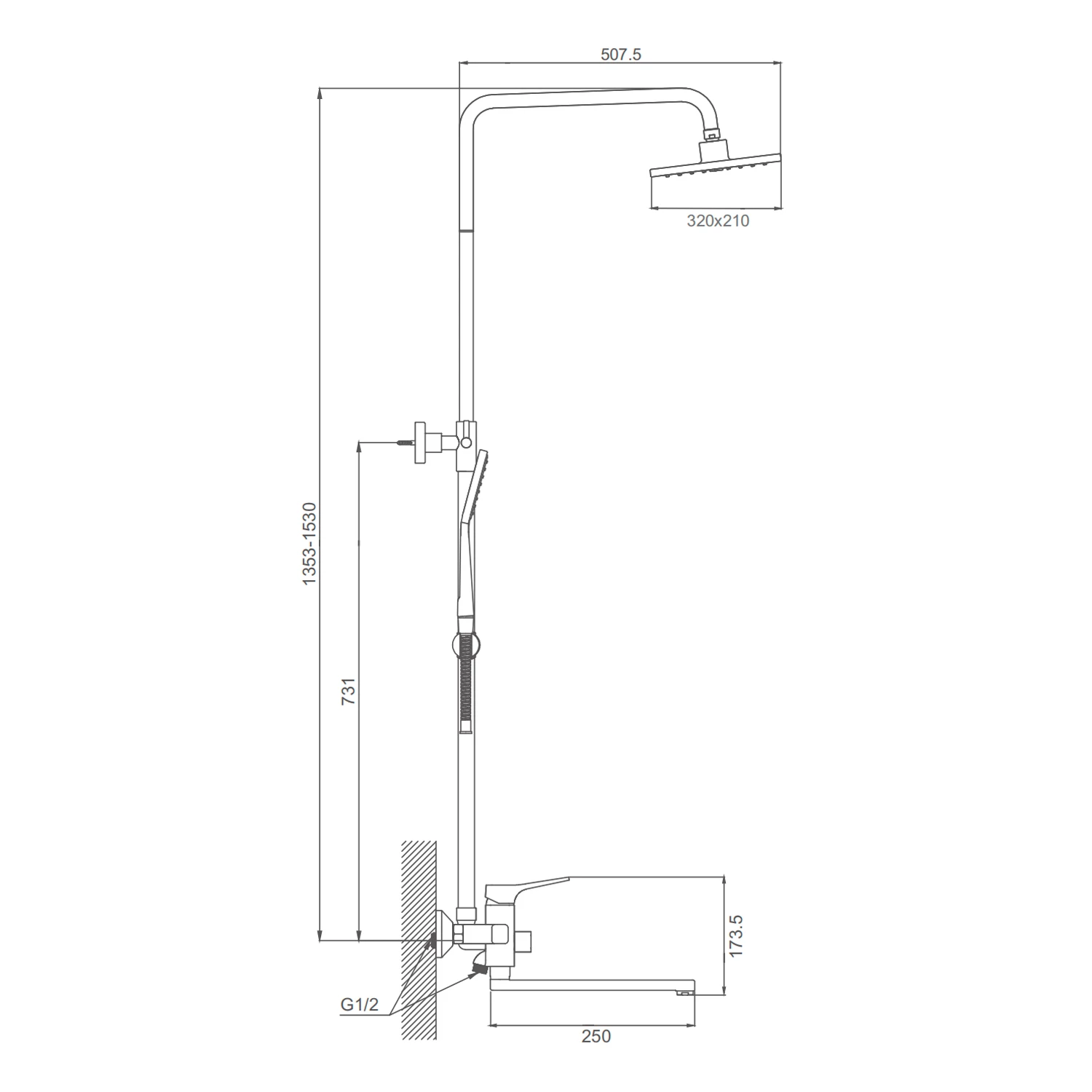 Форма верхнего душа (ШхД): квадратная 320х210мм