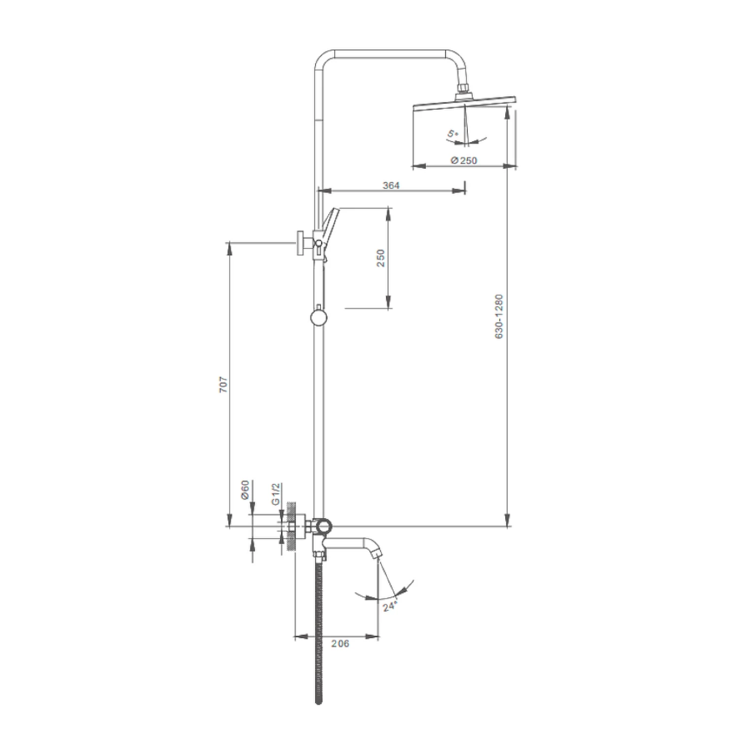 Форма верхнего душа (ШхД): ∅250мм