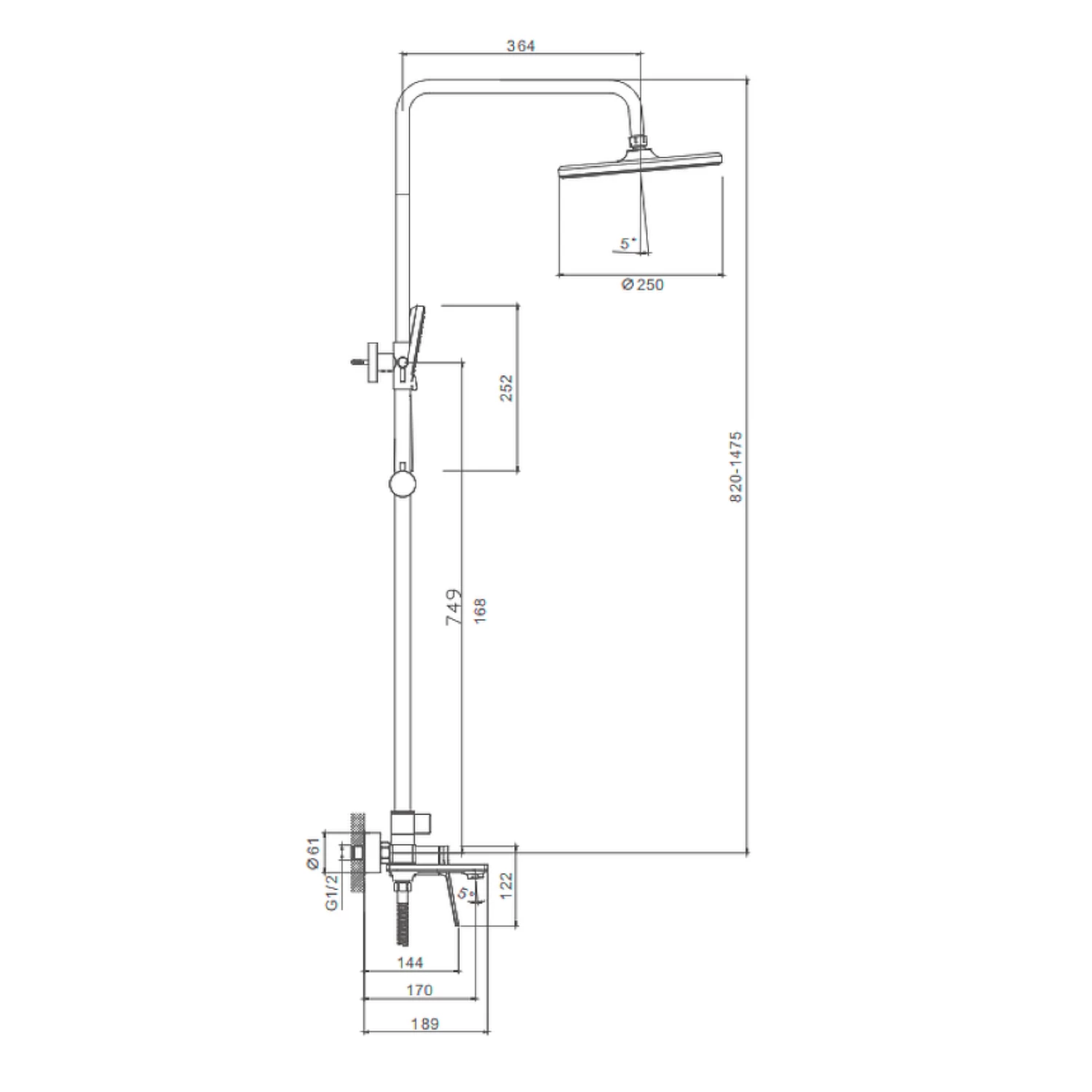 | Комплектация: | излив , смеситель , шланг , держатель , лейка , стойка , верхний душ |