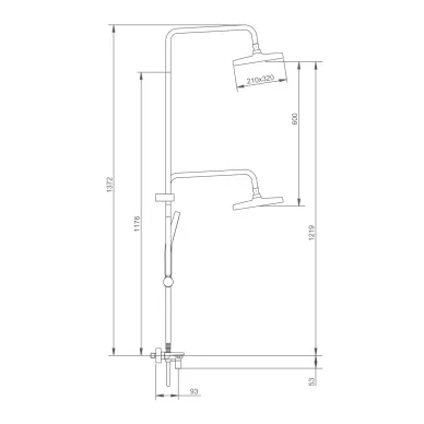 Форма верхнего душа (ШхД): прямоугольная 320х210 мм