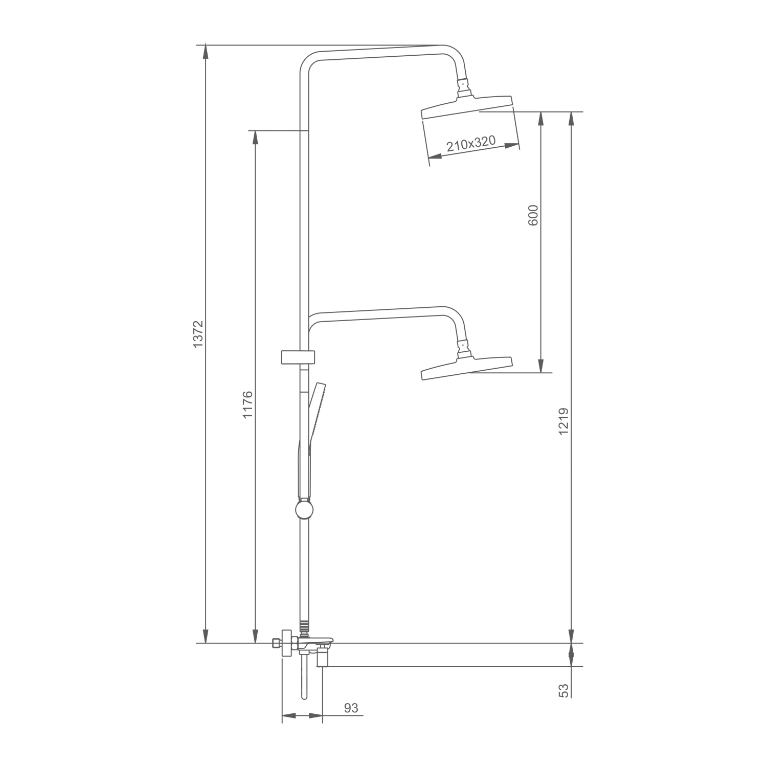 Форма верхнего душа (ШхД): прямоугольная 320х210 мм