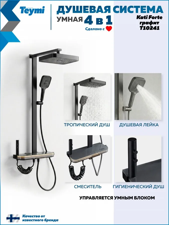 Душевая система Teymi Kati Forte T10241 с умным смесителем, графит