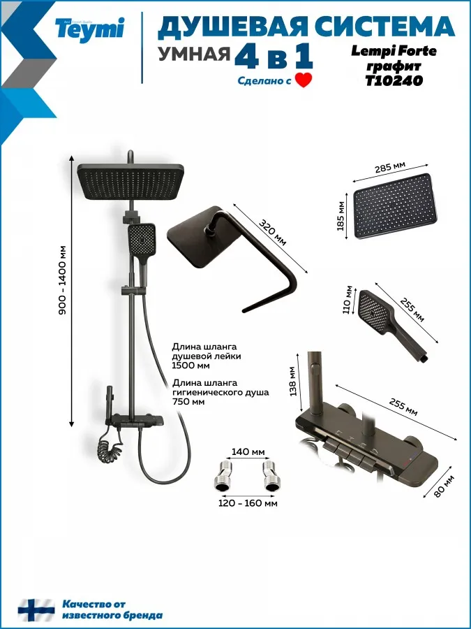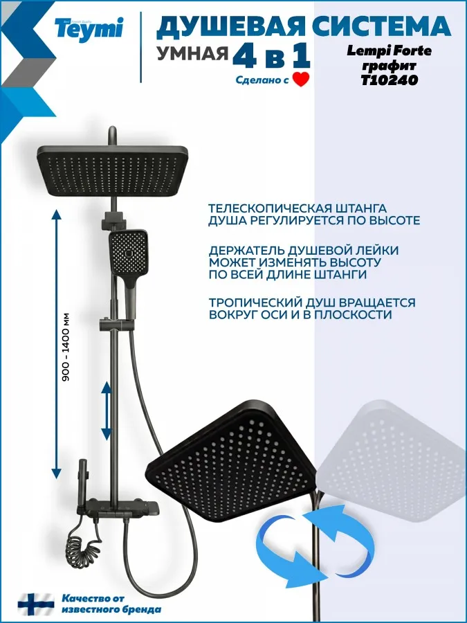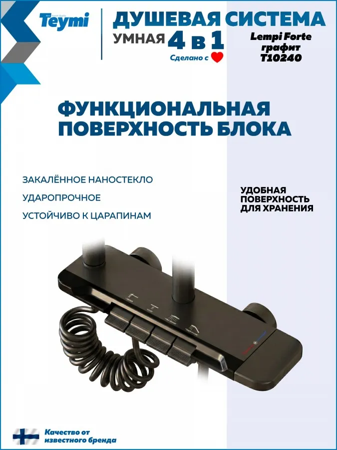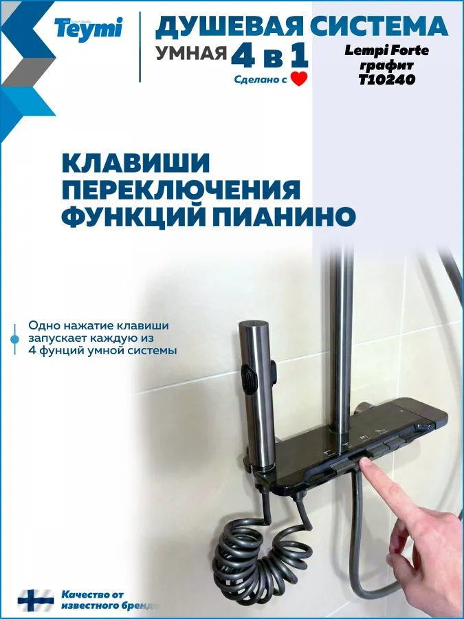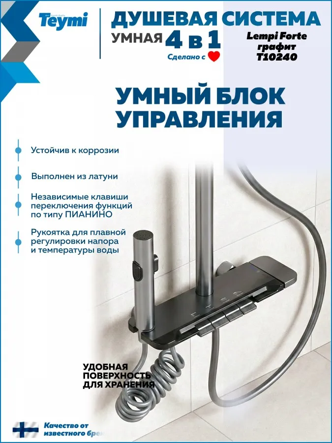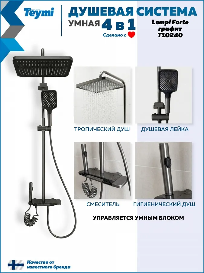 Душевая система Teymi Lempi Forte T10240 с умным смесителем, графит
