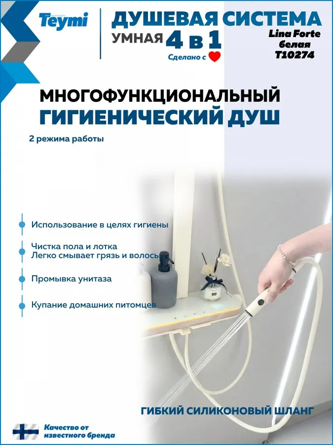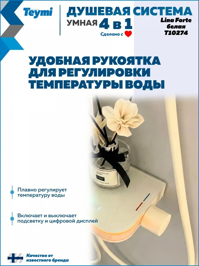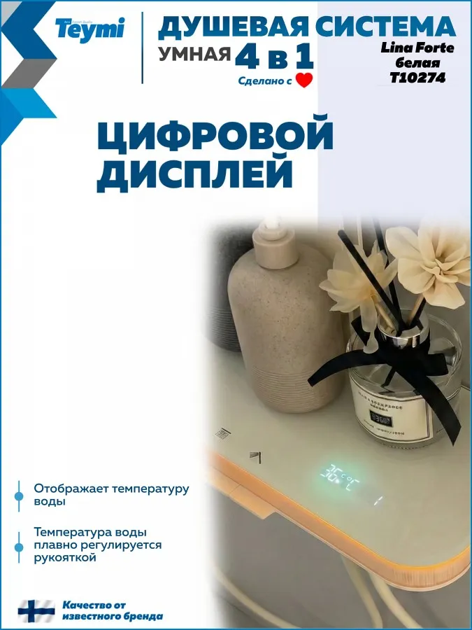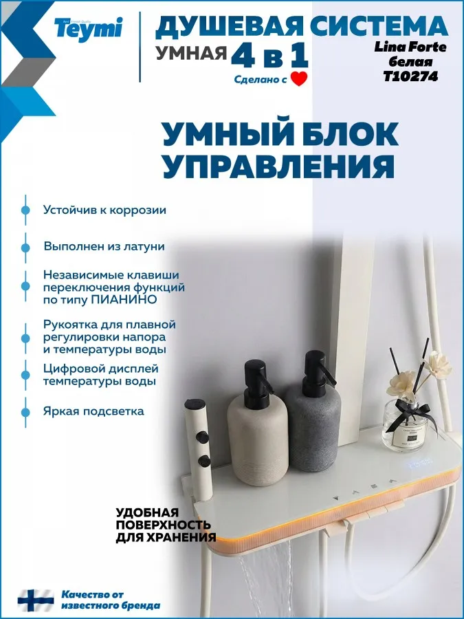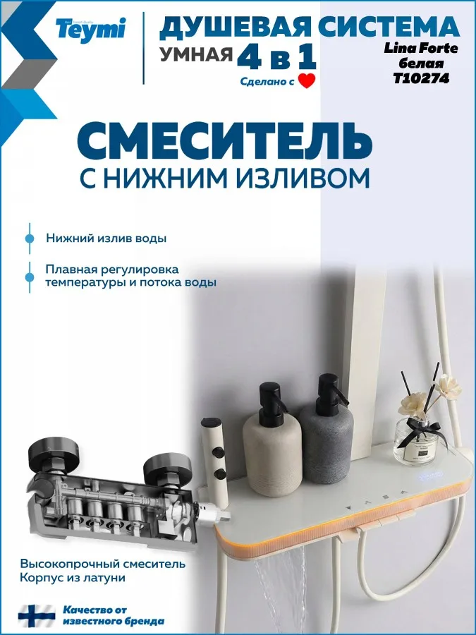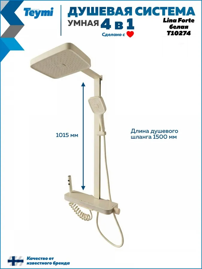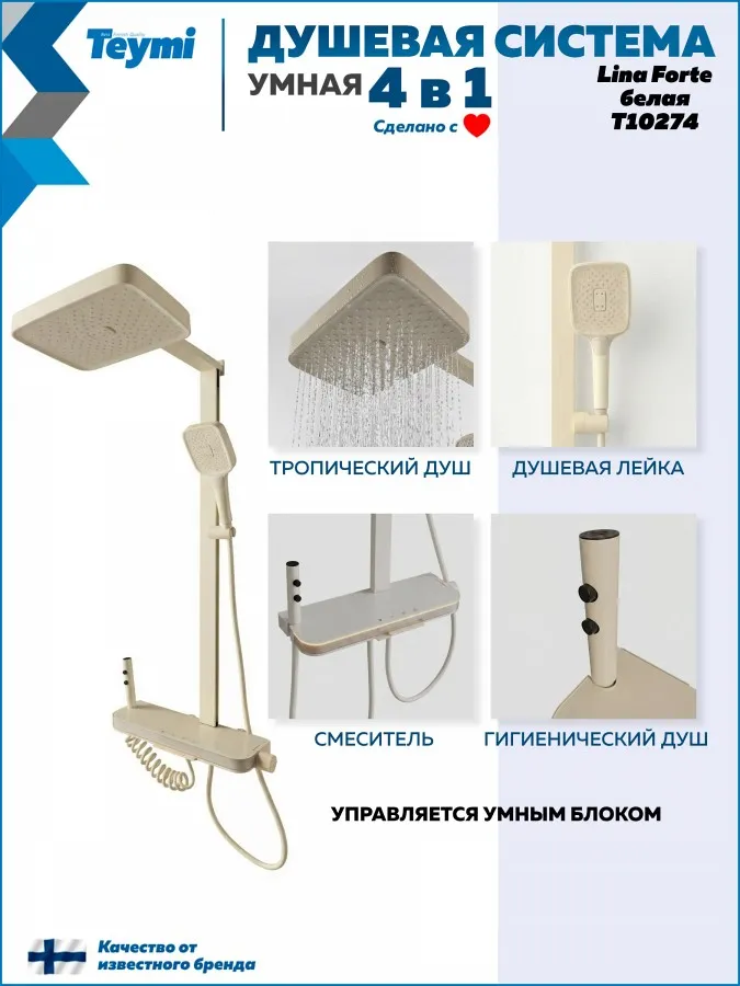 Душевая система Teymi Lina Forte T10274 с умным смесителем, слоновая кость