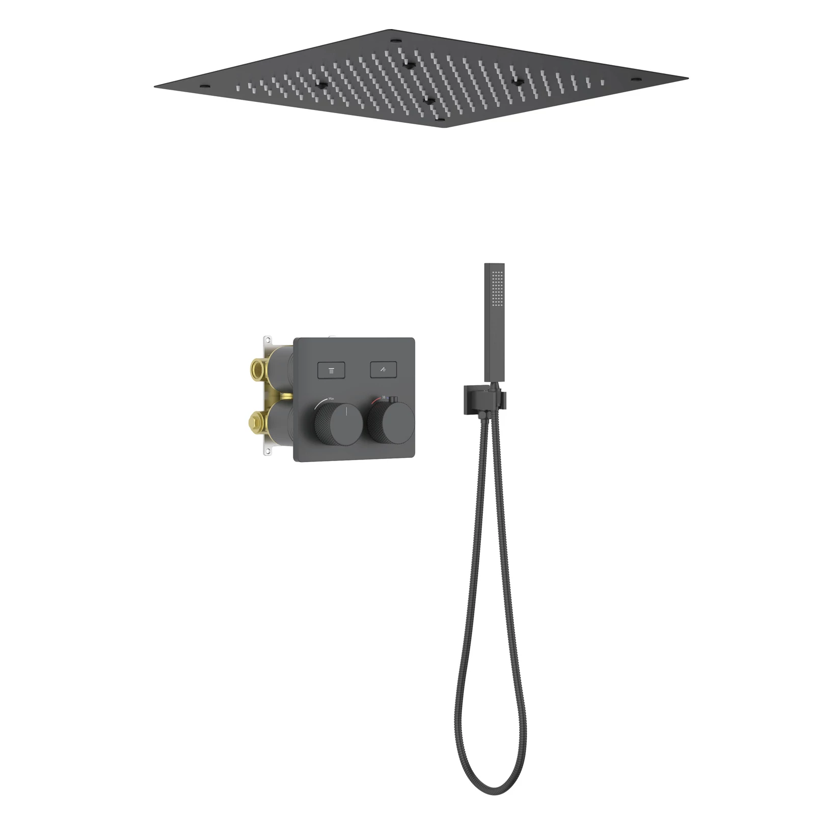 Душевая система скрытого монтажа, с термостатом с прямоугольной лейкой в стиле модерн