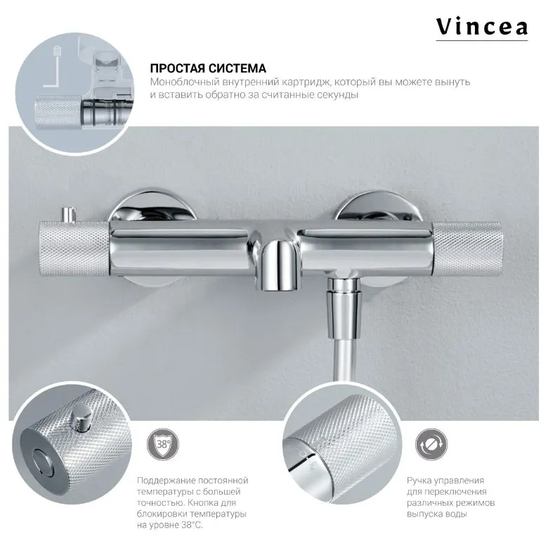 Душевая система Vincea Desire термостатический, с изливом, брашированный никель
