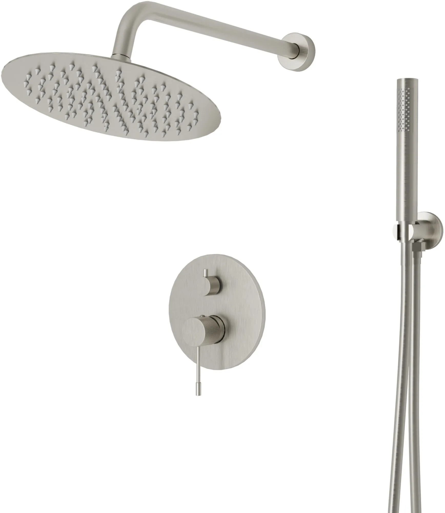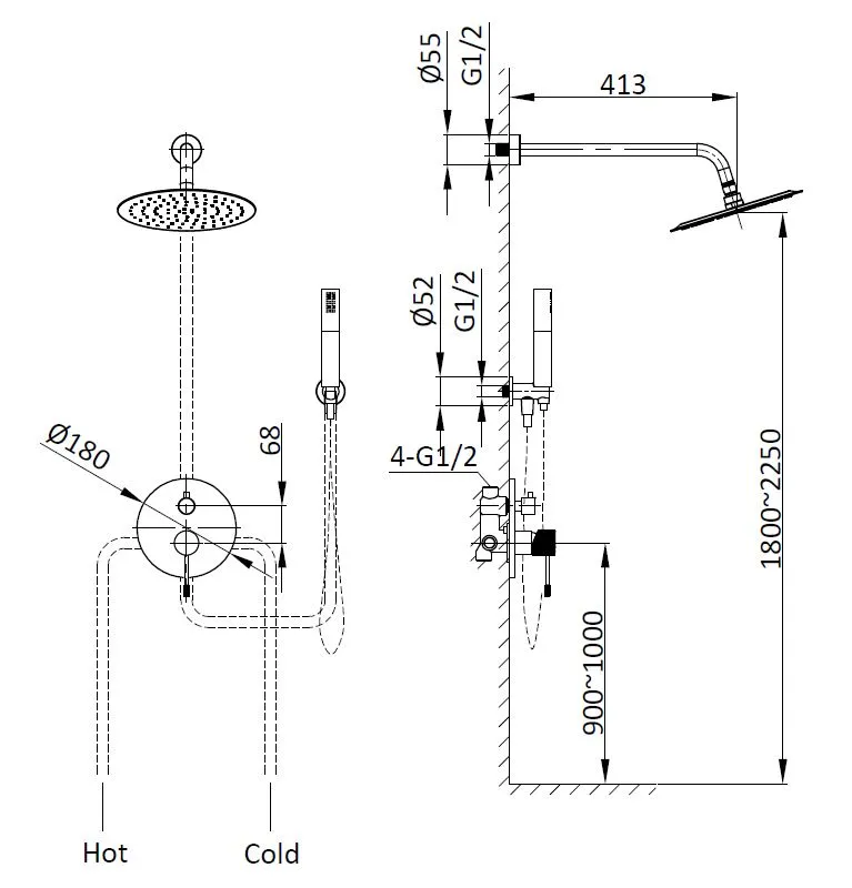 - Комплектация: Верхний душ, ручной душ, смеситель со встраиваемой частью;