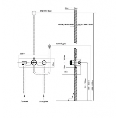 - Комплектация: Верхний душ, ручной душ, встраиваемый смеситель