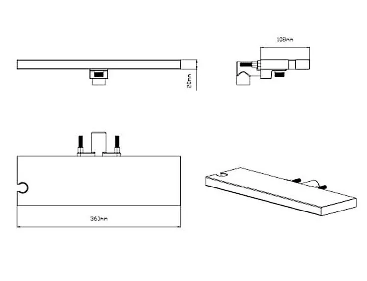 | Комплектация: | излив , верхний душ , полочка , лейка , держатель , смеситель , термостат , механизм , шланг |