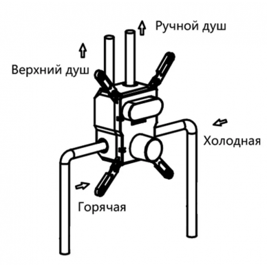 - Комплектация: Верхний душ, ручной душ, смеситель со встраиваемой частью