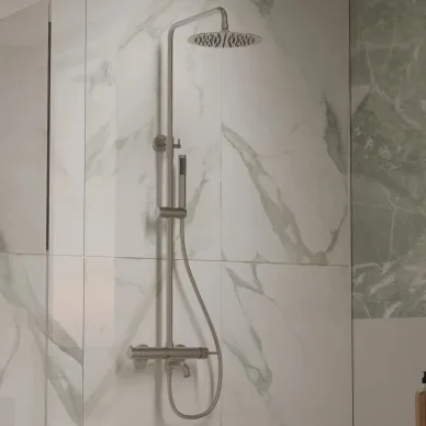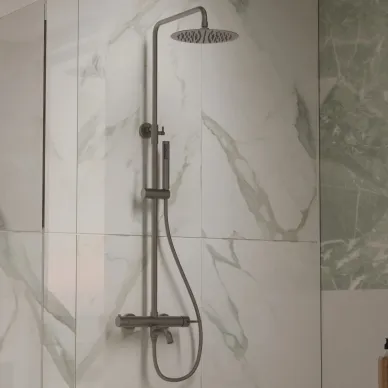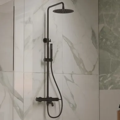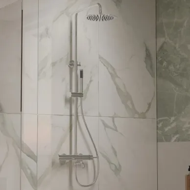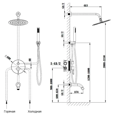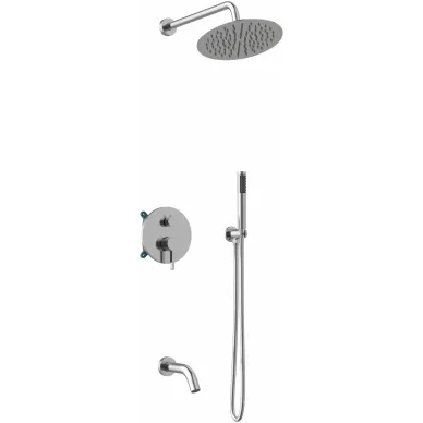 - Комплектация: Верхний душ, ручной душ, смеситель со встраиваемой частью;