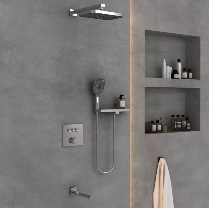 - Душевой комплект встраиваемый, с поворотным изливом, трехрежимный