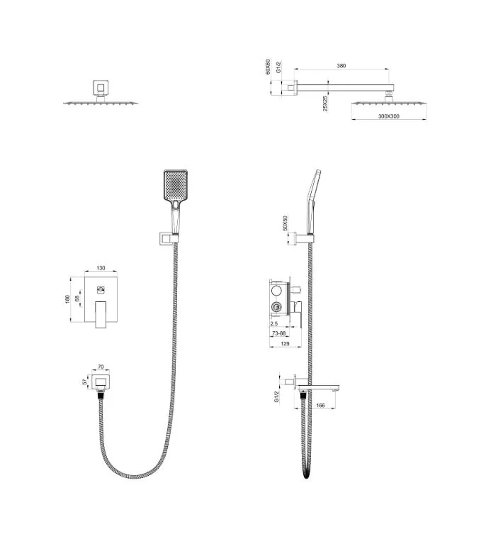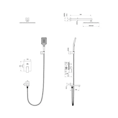 Комплектация: | излив , верхний душ , лейка , держатель , шланг , механизм , кронштейн , смеситель |