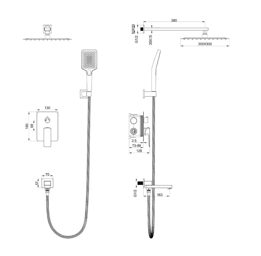 Душевая система Wonzon & Woghand Edge WW-88939003-CR встраиваемая, с изливом, хром