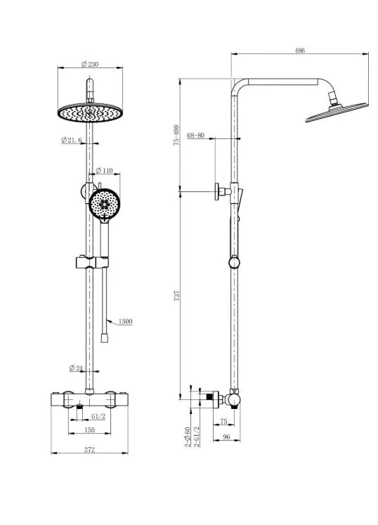 | Комплектация: | верхний душ , смеситель , термостат , кронштейн , шланг , держатель , лейка , стойка |