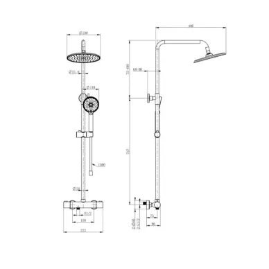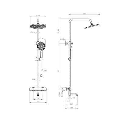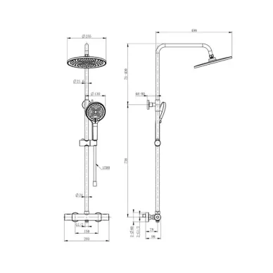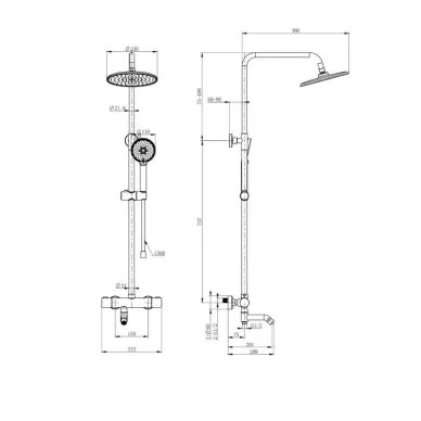 | Комплектация: | излив , верхний душ , смеситель , термостат , кронштейн , шланг , держатель , лейка , стойка |