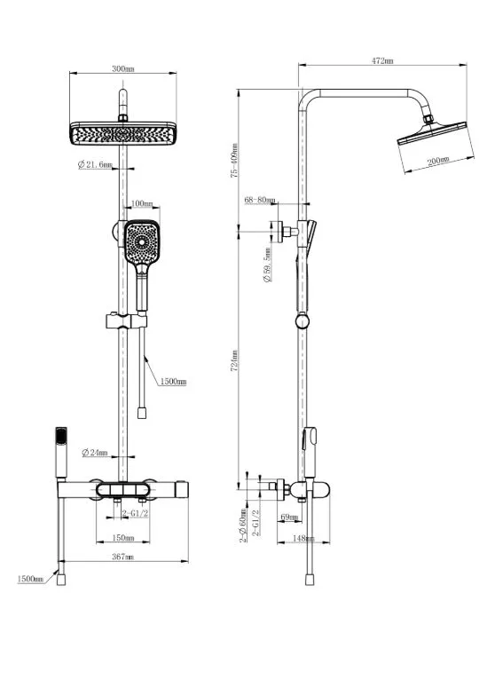 | Комплектация: | излив , верхний душ , стойка , лейка , держатель , шланг , кронштейн , термостат , смеситель |