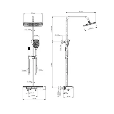| Комплектация: | излив , верхний душ , стойка , лейка , держатель , шланг , кронштейн , термостат , смеситель |