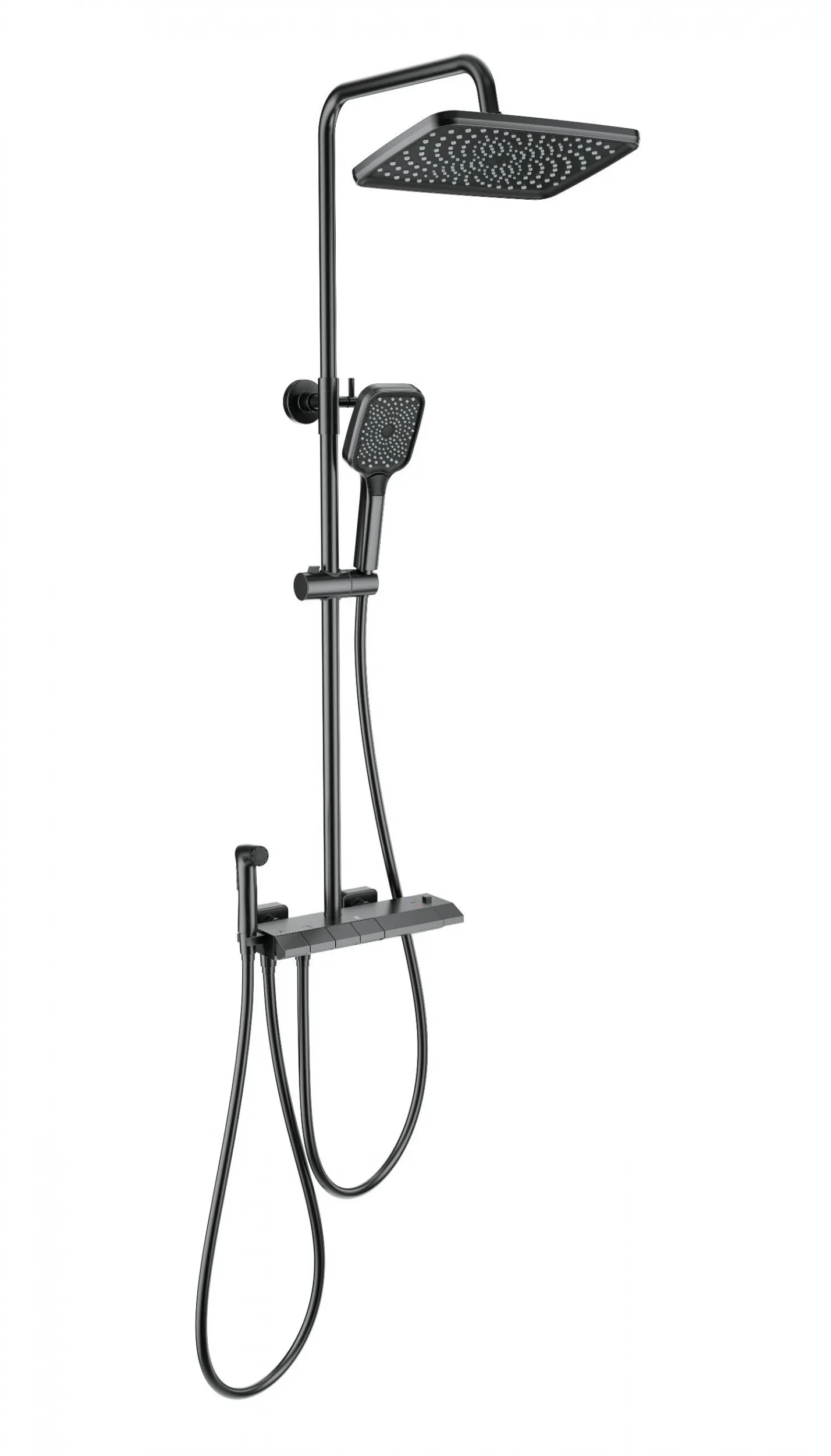 Душевая система Wonzon & Woghand Muse Piano WW-B4132-A-BGG термостатическая, с техническим душем, темный графит