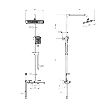 | Комплектация: | излив , верхний душ , стойка , лейка , держатель , шланг , кронштейн , термостат , смеситель |