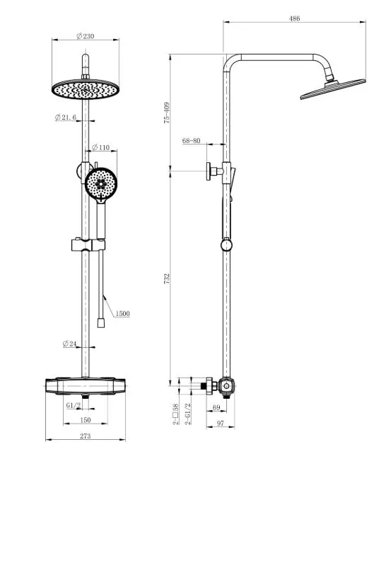 | Комплектация: | верхний душ , смеситель , термостат , кронштейн , шланг , держатель , лейка , стойка |