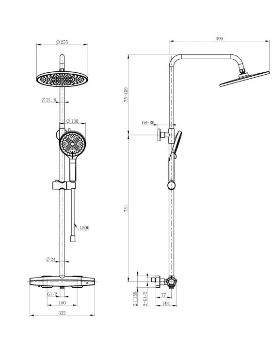 | Комплектация: | верхний душ , смеситель , термостат , кронштейн , шланг , держатель , лейка , стойка |