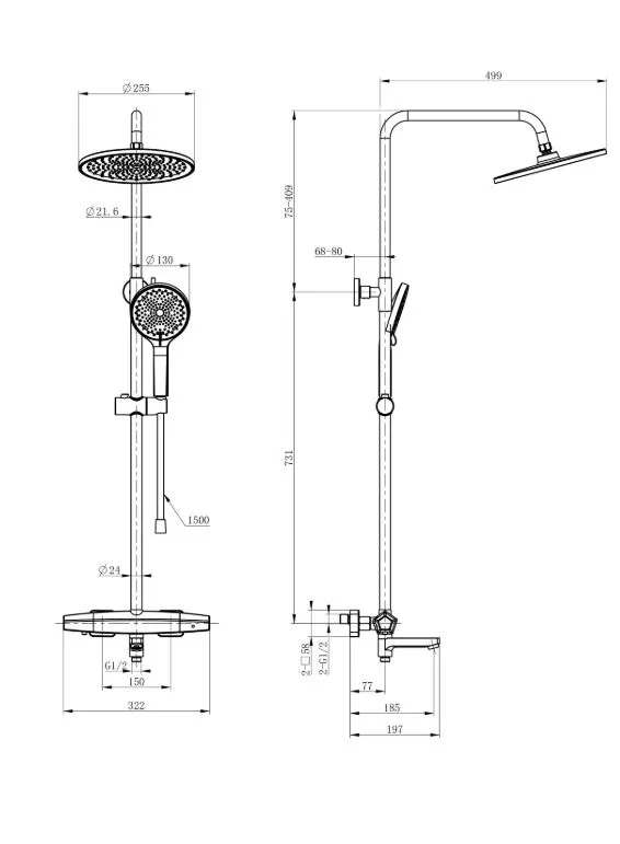 | Комплектация: | излив , верхний душ , смеситель , термостат , кронштейн , шланг , держатель , лейка , стойка |