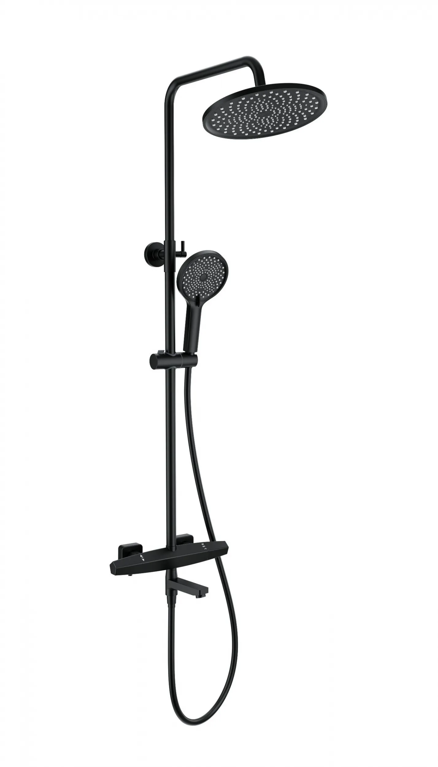 Душевая система Wonzon & Woghand Neo WW-B3046-A1-MB термостатическая, с изливом, черная матовая