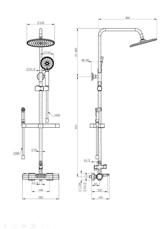 | Комплектация: | верхний душ , смеситель , термостат , кронштейн , мыльница , шланг , держатель , лейка , стойка |