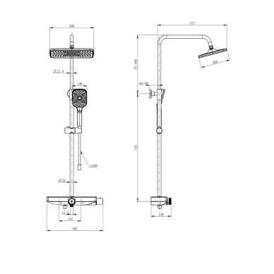 | Комплектация: | излив , смеситель , термостат , кронштейн , шланг , держатель , лейка , стойка , верхний душ |