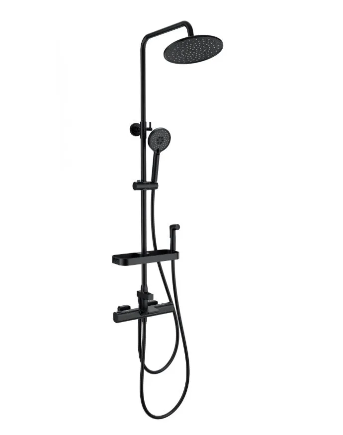 Душевая система Wonzon & Woghand Plate WW-C3017-A1-MB термостатическая, с гигиеническим душем, черная матовая