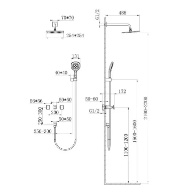 Комплектация: | смеситель , кронштейн , шланг , держатель , лейка , стойка , верхний душ |