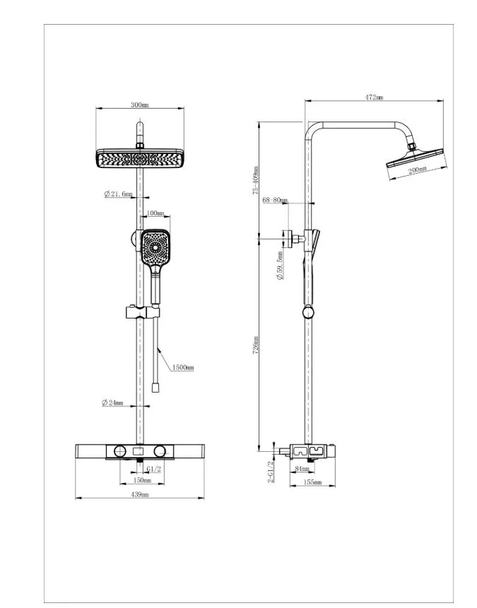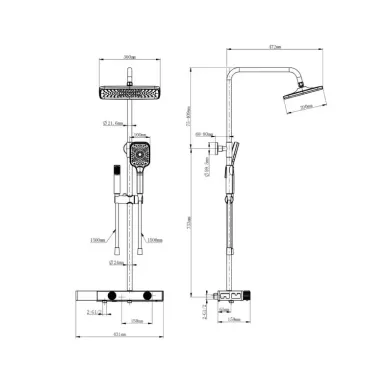 Комплектация: | верхний душ , смеситель , термостат , кронштейн , шланг , держатель , лейка , стойка |
