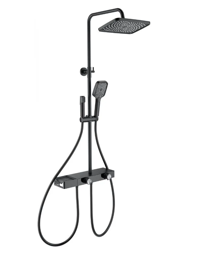 Душевая система Wonzon & Woghand Shelf WW-B4161-MB термостатическая, с техническим душем, черная матовая