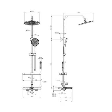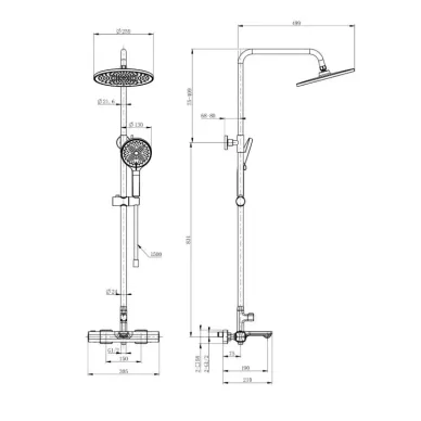 | Комплектация: | излив , верхний душ , смеситель , термостат , кронштейн , шланг , держатель , лейка , стойка |
