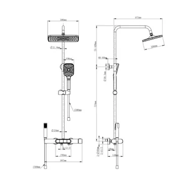 | Комплектация: | излив , верхний душ , смеситель , термостат , кронштейн , шланг , держатель , лейка , стойка |