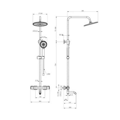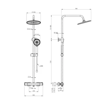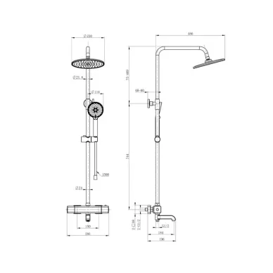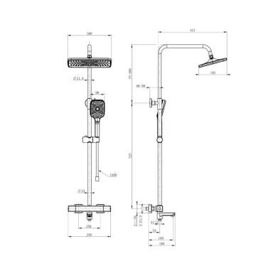 | Комплектация: | излив , верхний душ , смеситель , термостат , кронштейн , шланг , держатель , лейка , стойка |