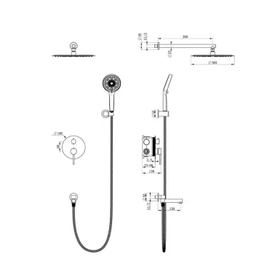 Комплектация: | излив , верхний душ , стойка , лейка , держатель , шланг , кронштейн , смеситель |