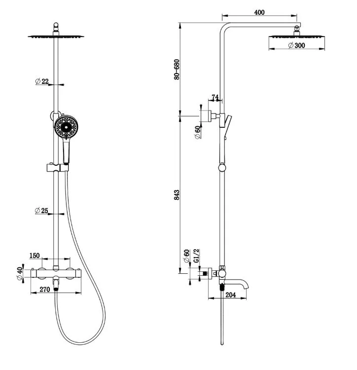 | Комплектация: | смеситель , кронштейн , шланг , держатель , лейка , стойка , верхний душ , излив |