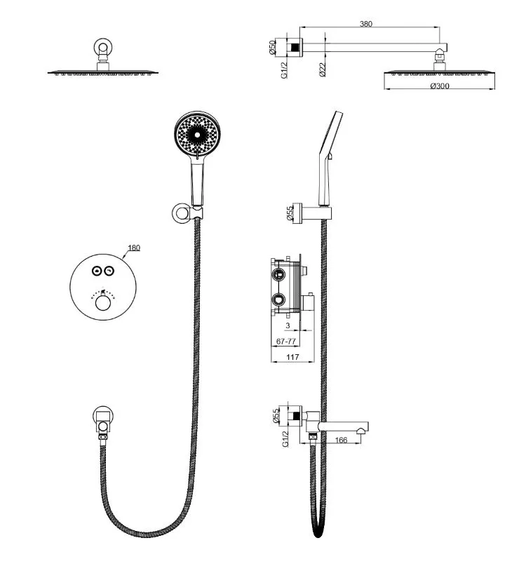 | Комплектация: | излив , верхний душ , лейка , смеситель , термостат , кронштейн , механизм , шланг , держатель |